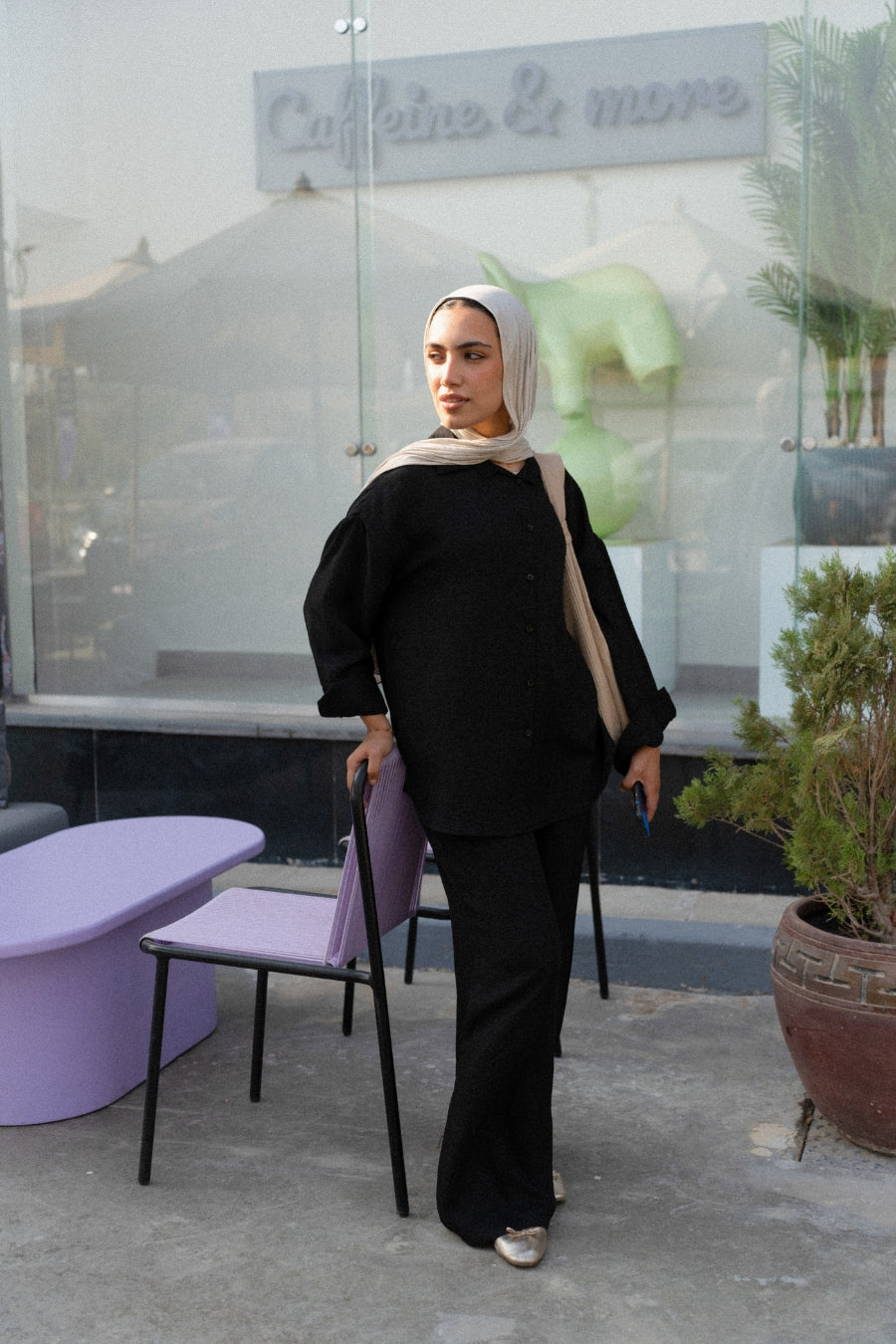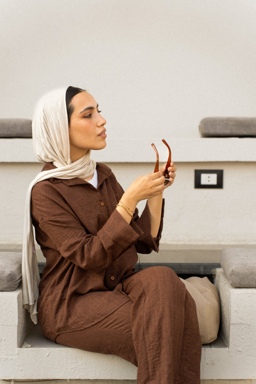 Step into effortless elegance with this lightweight linen set, featuring a relaxed-fit shirt and matching wide-leg pants. Perfect for casual outings or smart-chic occasions, the breathable linen fabric ensures all-day comfort and style.