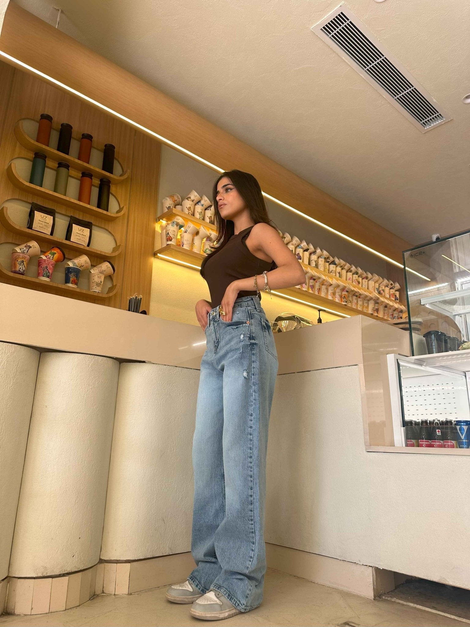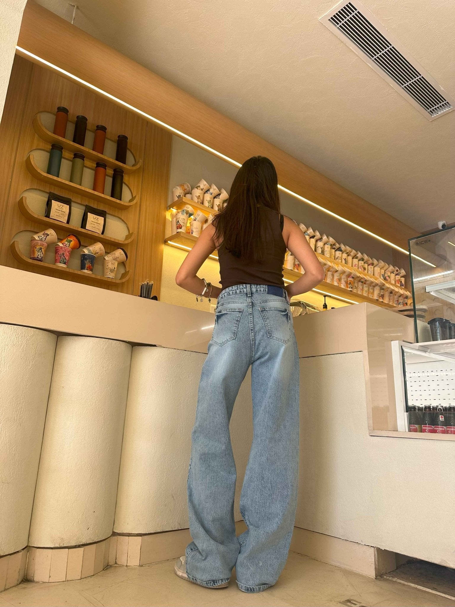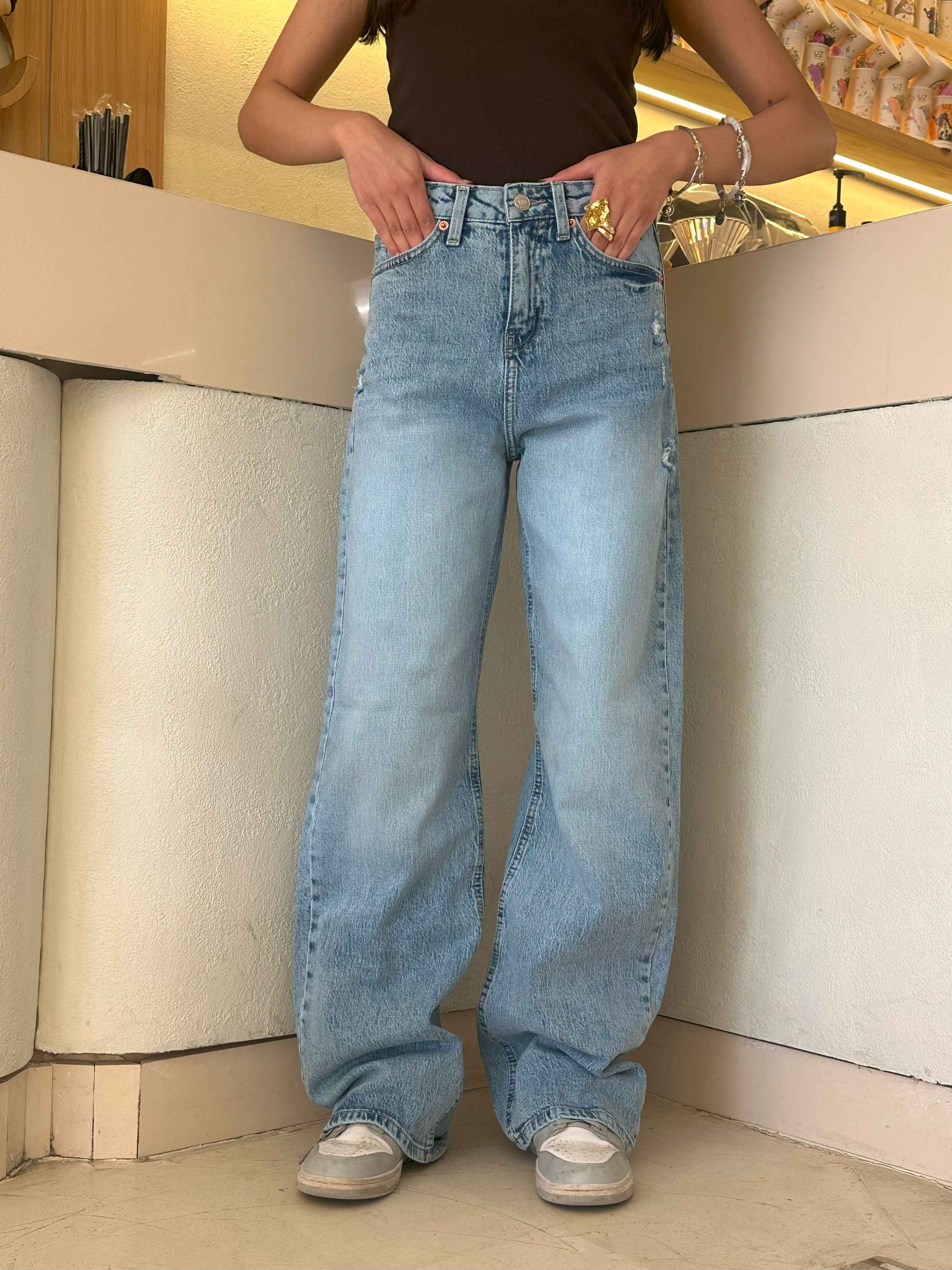 Elevate your casual wardrobe with these High-Waisted Wide Leg Light Iced Blue Wash Jeans. Designed for comfort and style, perfect for creating effortlessly chic looks. The light wash adds a touch of vintage flair, making them ideal for pairing with crop tops, oversized sweaters, or blazers. these jeans offer the perfect blend of fashion and functionality. Color: Light Iced Blue Fit: High-Waisted for a flattering shape, wide leg and relaxed fit for all-day comfort Premium quality denim Durable denim fabric with soft feel Five-pocket design for functionality Ripped details on the hips Button and zip fly closure Material: Premium denim for long-lasting comfort 100% Cotton & Not Stretchy Care Instructions: Machine wash cold, tumble dry low Perfect with: a crop tops, oversized sweaters, or blazers. Model is wearing size: 34 EUR , Height: 164 cm