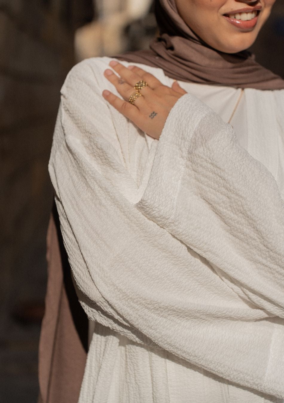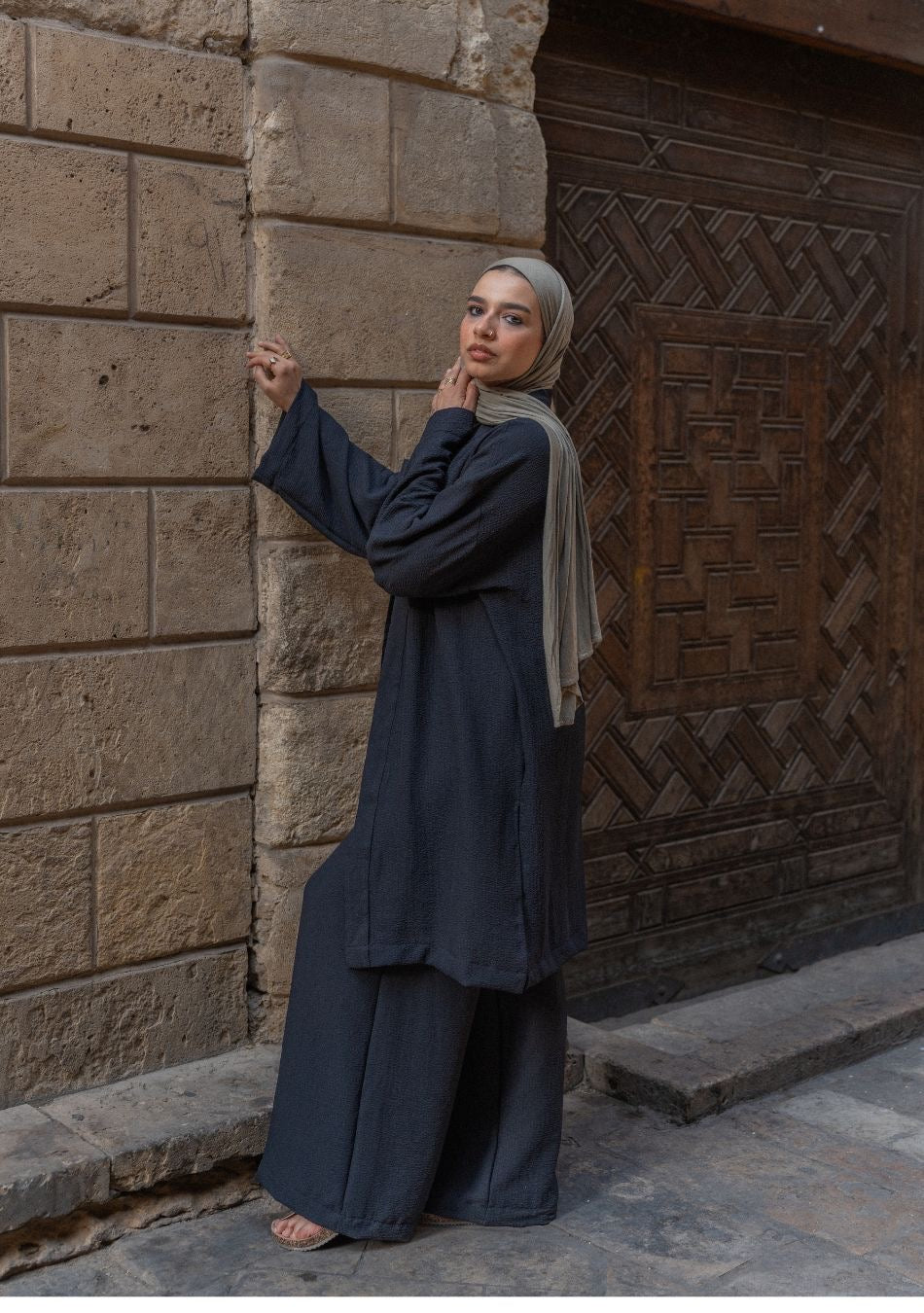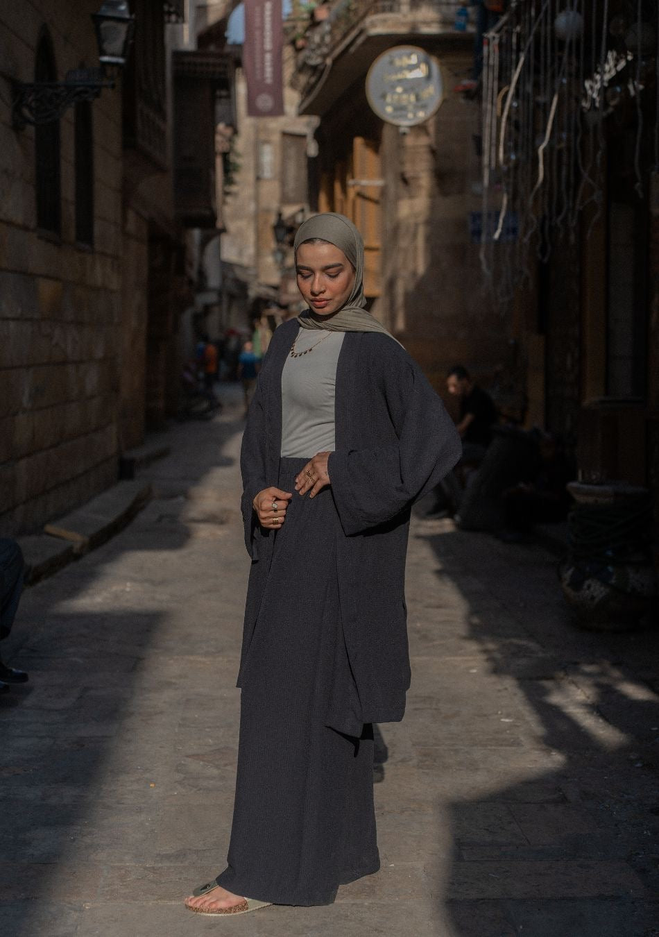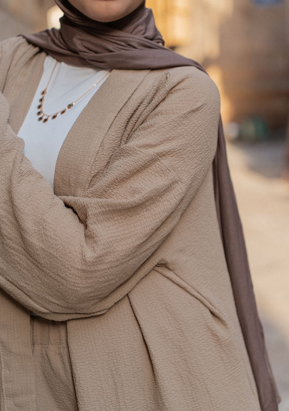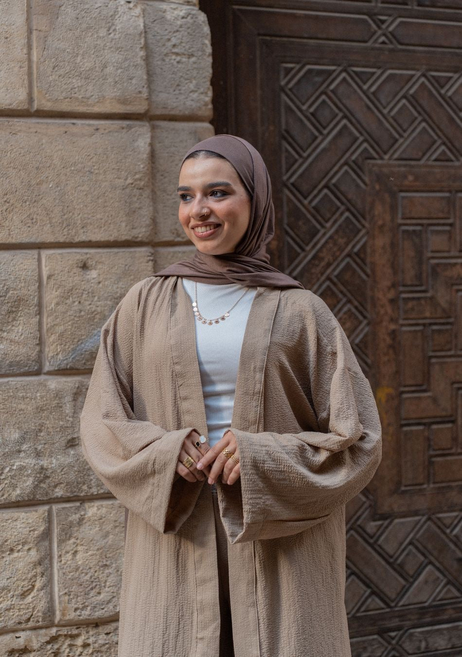 Inspired by the quiet elegance of desert landscapes, the Wadi Whisper Set pairs a flowy textured cardigan with relaxed-fit pants for a look that’s effortlessly graceful. Lightweight, breathable, and modest — available in serene shades of White, Black, Café, Beige, and Brown. Sizes M to XL.